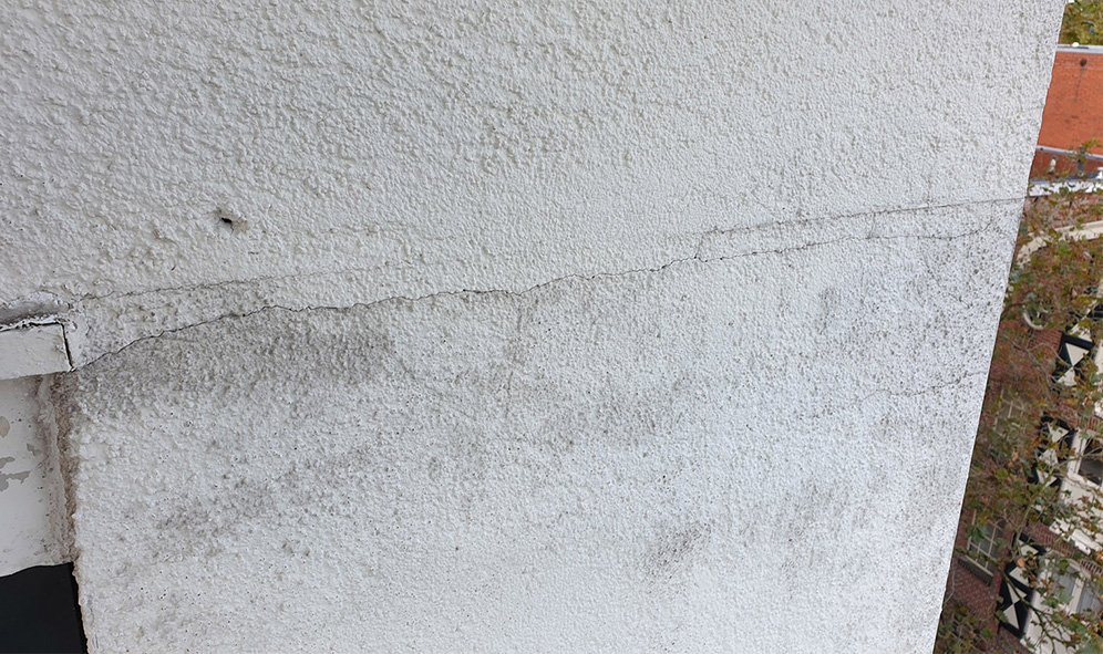 Op het binnenterrein van het Hoofdbureau van Politie aan de Rademarkt in Groningen herstellen we scheuren in de gevel. We pakken het grondig aan. De scheuren worden uitgeslepen en hersteld. We verwijderen de onderste halve meter van het stucwerk, tot op de fundering. Dit gedeelte is dusdanig beschadigd door optrekkend vocht dat we hier een zogenoemd maaivelddetail toepassen. Dit zorgt ervoor dat het vocht niet kan intrekken en dat eventueel vocht door drainage snel wordt afgevoerd. Vervolgens brengen we een nieuwe stuclaag aan.