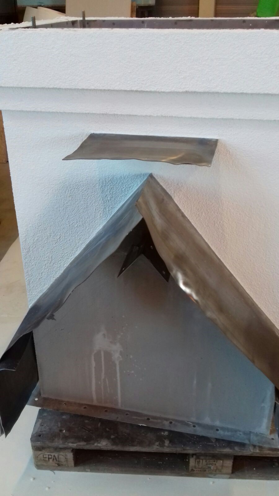 aanbrengen mortelweefsellaag en sierpleister op schoorstenen in het aardbevingsgebied